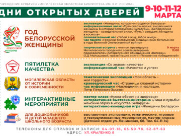 Приглашаем вас на Дни открытых дверей в Могилевскую областную библиотеку! 📚✨ С 9 по 12 марта у нас подготовлена насыщенная программа, приуроченная к […]