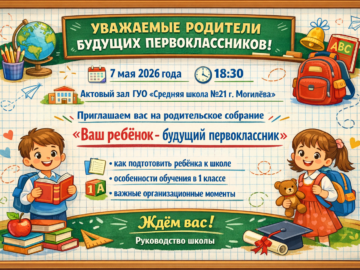 7 мая 2026 года в 18.30 в актовом зале государственного учреждения образования «Средняя школа №21 г. Могилёва» состоится родительское собрание на тему «Ваш […]