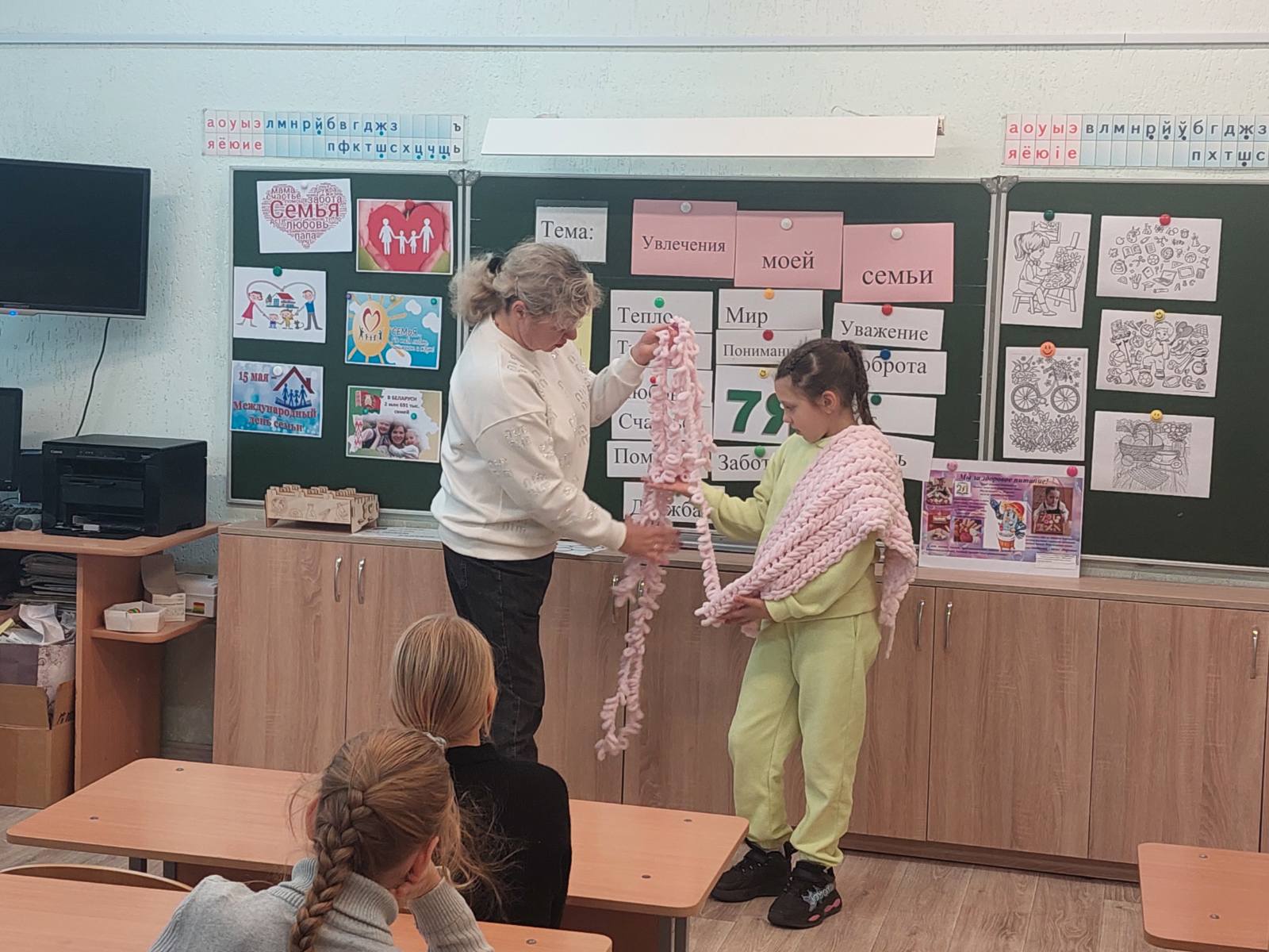 Семьи учащихся поделились своими увлечениями. Ребята изучили методику вязания вещей руками