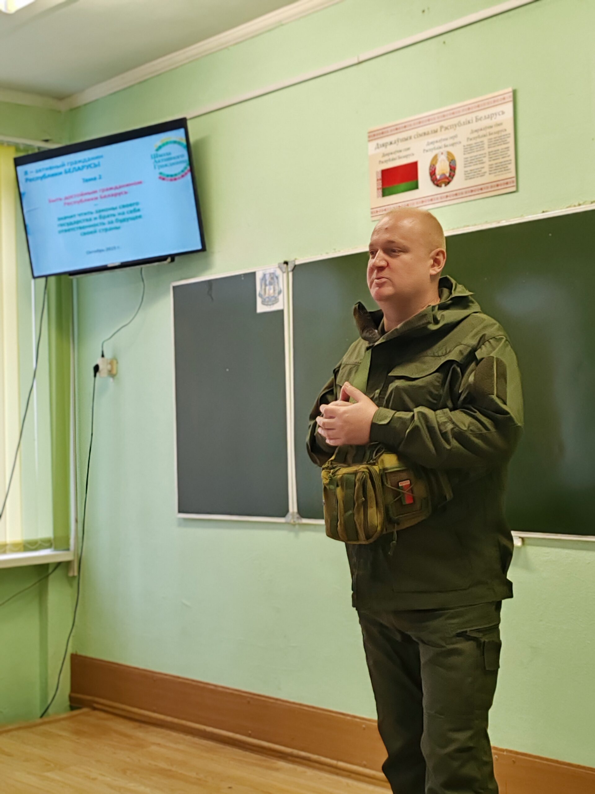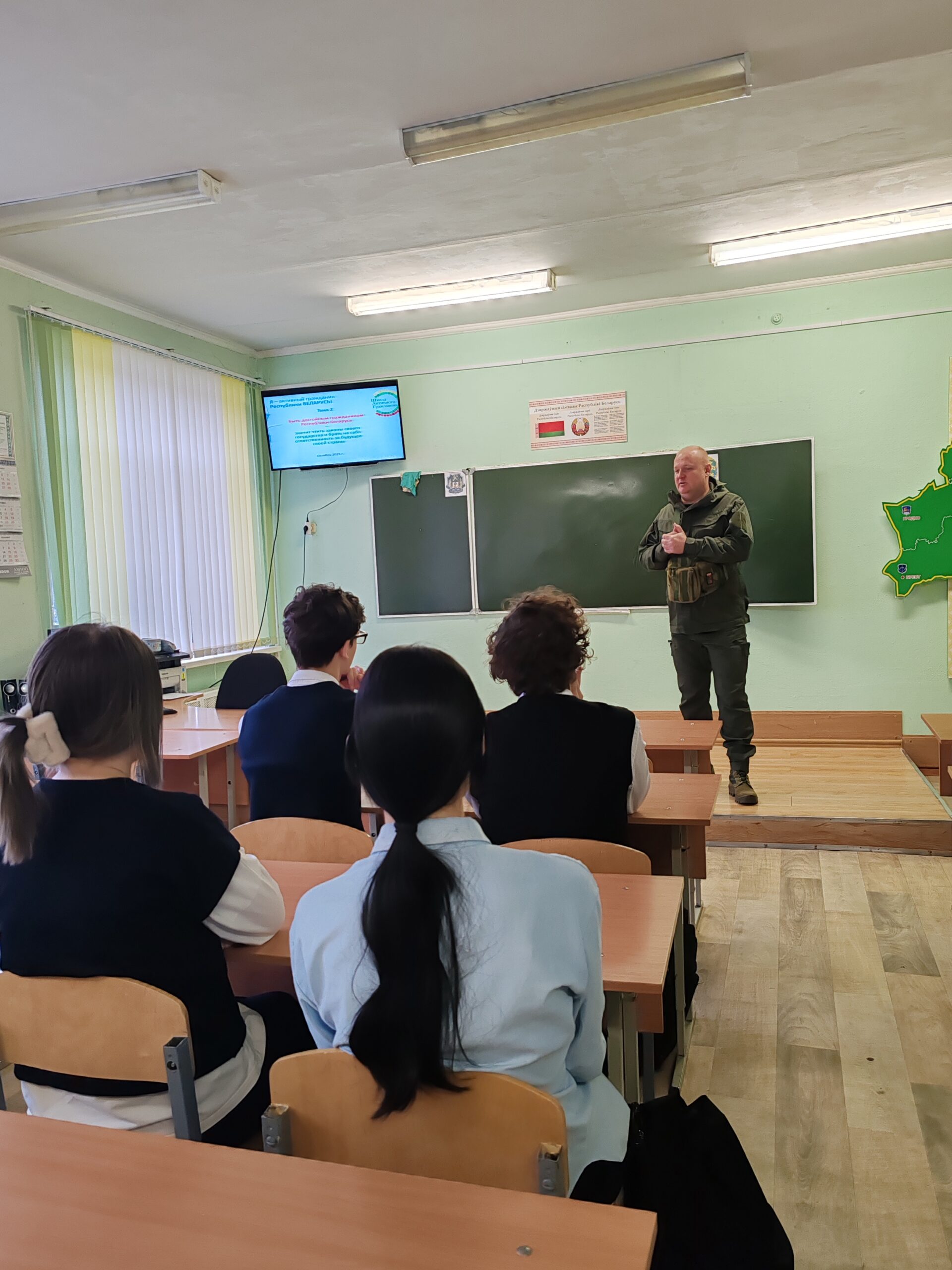 Перед учащимися 10-го класса выступил Сысоев Константин Николаевич, заместитель командира батальона милиции Ленинского (г. Могилева) отдела департамента охраны