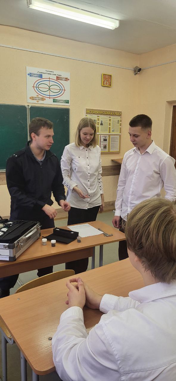 Эксперт Могилевского межрайонного отдела государственного комитета судебных экспертиз Республики Беларусь Гизовский Н.А. провел профориентационную беседу с ребятами 11-х классов, в которой рассказал о специфике своей работы и о том, куда необходимо поступать для того, чтобы прийти на работу в ГКСЭ РБ.