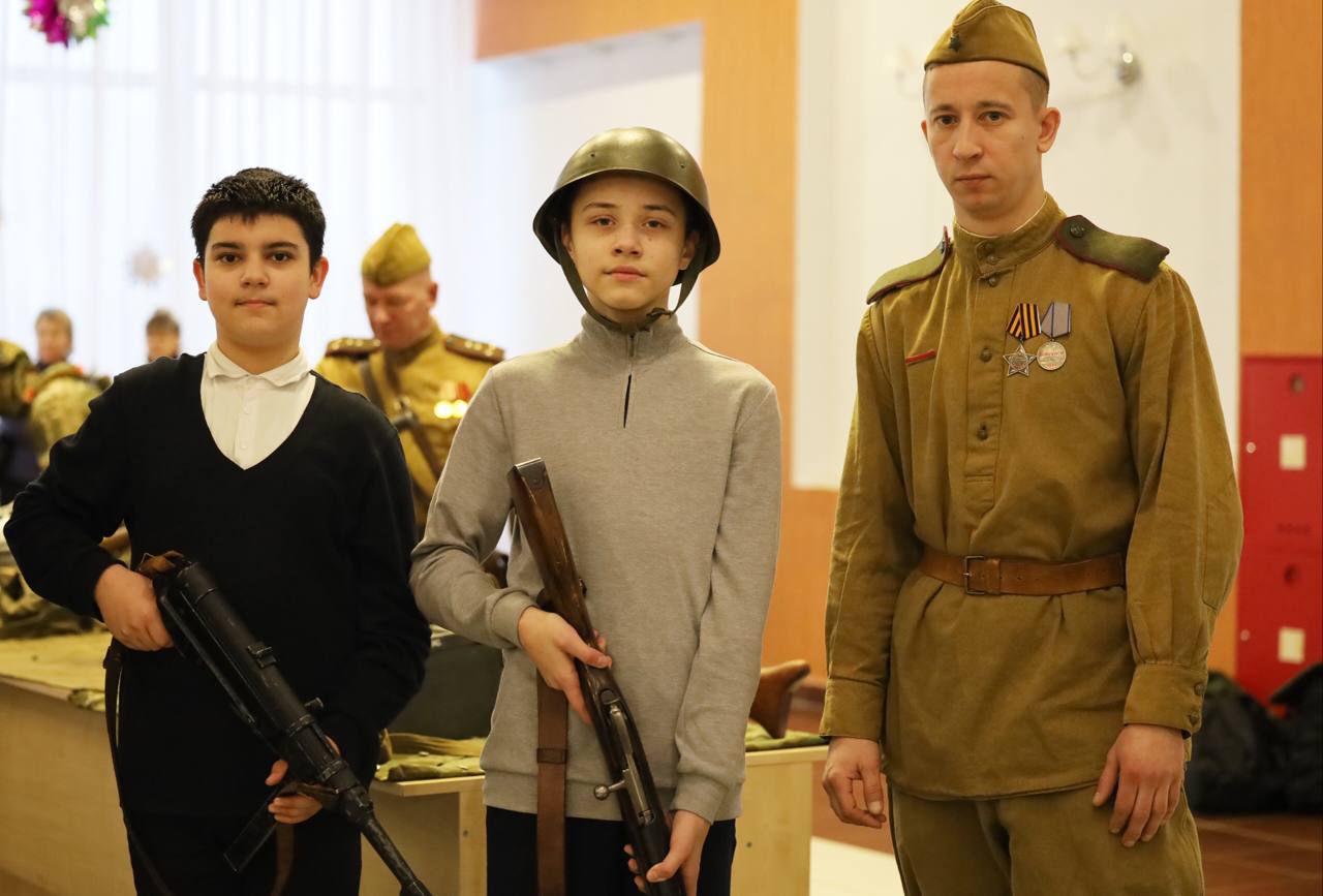 В рамках мероприятия была организована выставка военной атрибутики, в которой принял участие руководитель по военно — патриотическому воспитанию Карпюк Э.С., и страйкбольного снаряжения, а также зона для знакомства с военными профессиями.