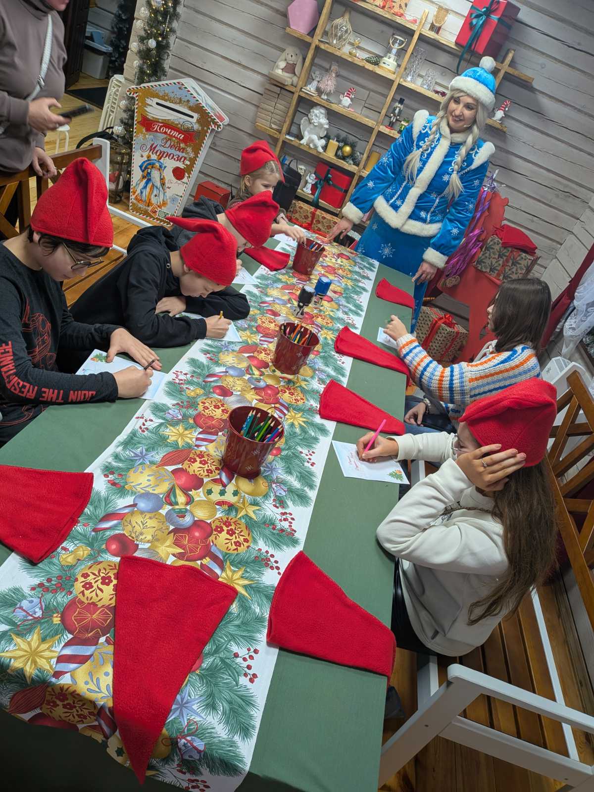 Первые гости резиденции Деда Мороза в парке в Подниколье познакомились с Дедушкой Морозом и Снегурочкой, водили хоровод, сделали сувениры своими руками в честь символа Нового года, а также угостились вкусным чаем и сладостями.