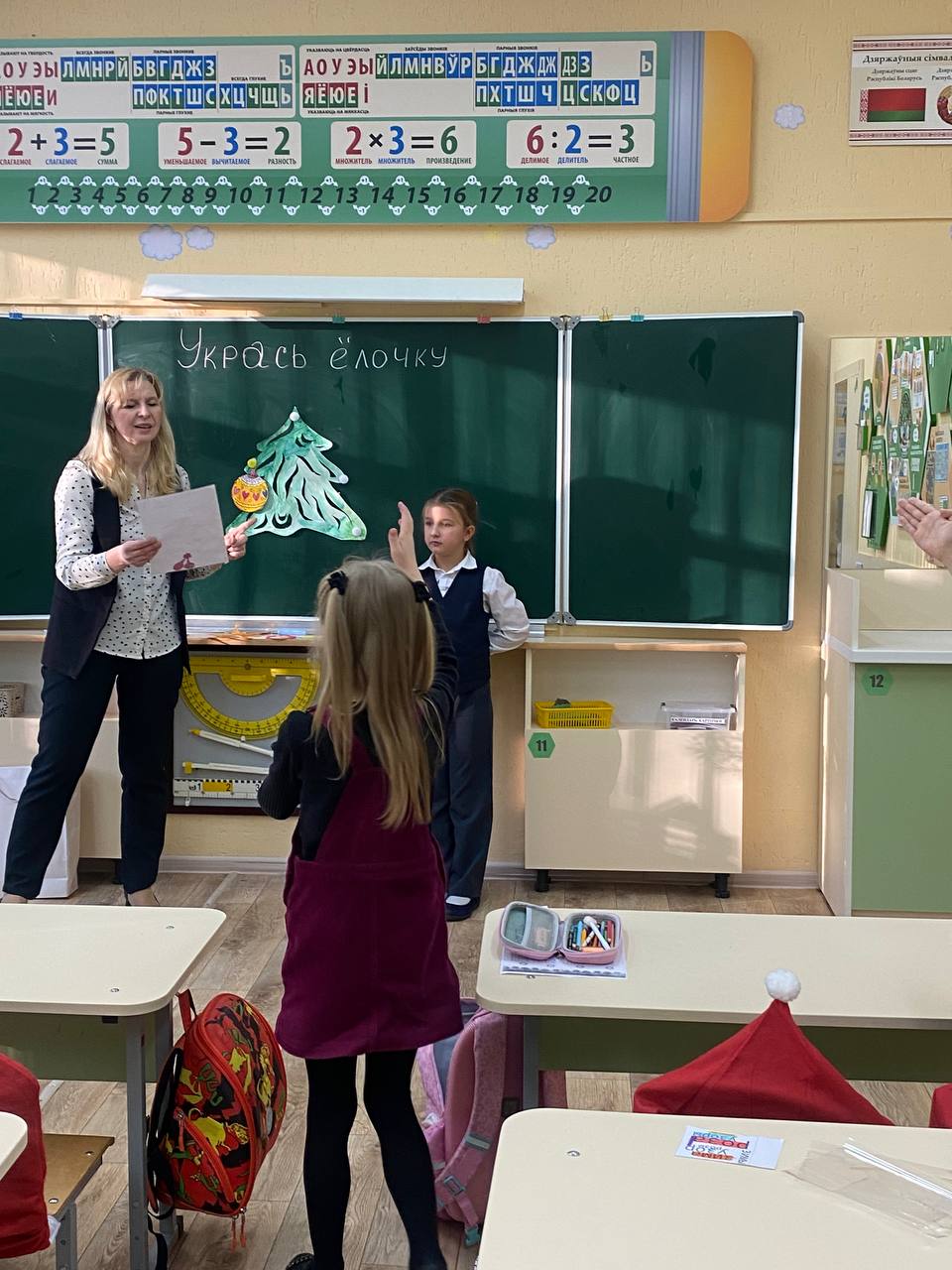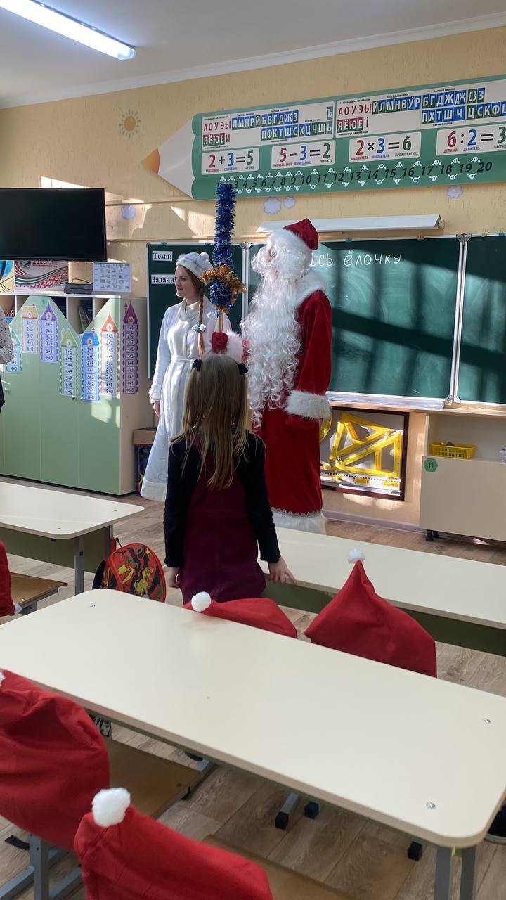 Сегодня учащиеся 1В класса поиграли в новогоднюю игру «Укрась Ёлочку». Ребята разгадывали загадки,, рисовали, читали стихи и даже пели.
