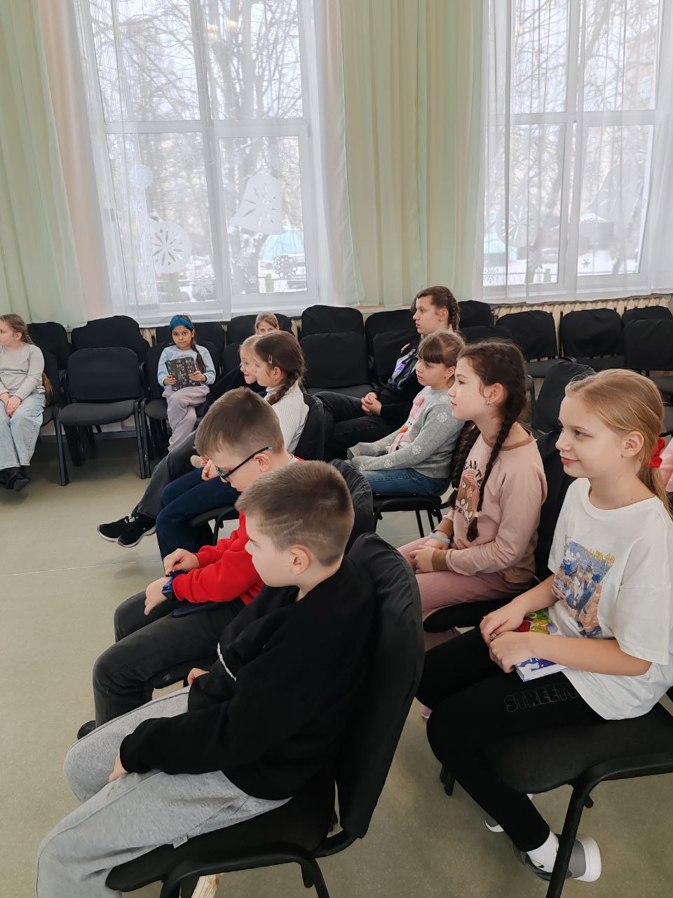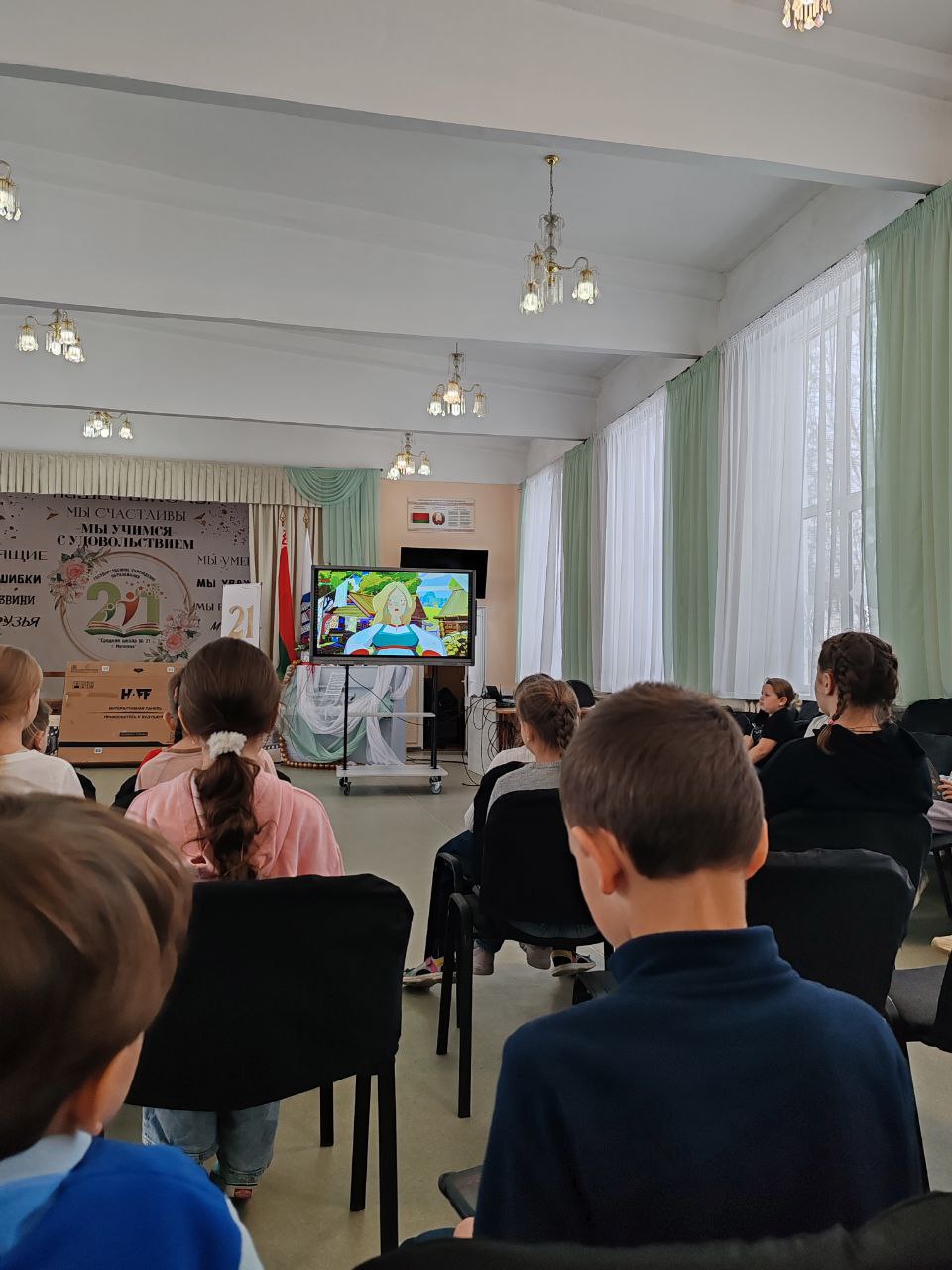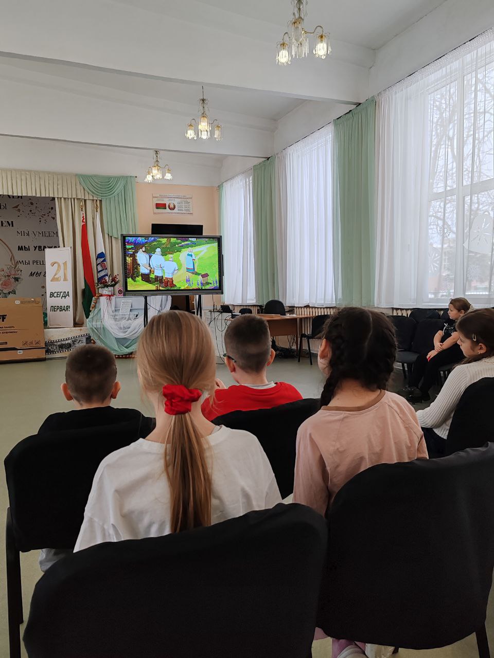 - Ребята из воспитательно-оздоровительного лагеря «Вясёлка» за просмотром мультфильма