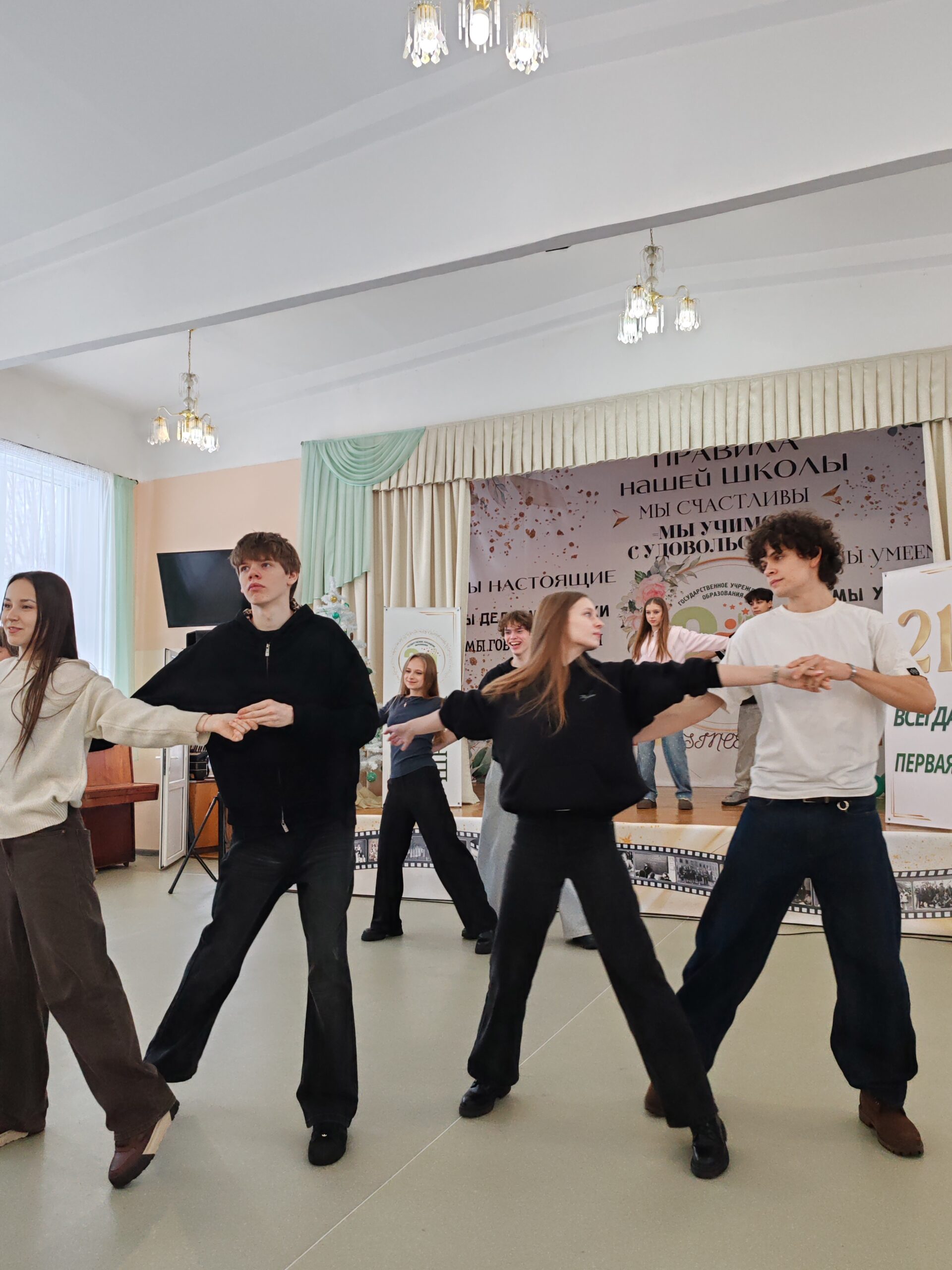 Наши учащиеся собрались сегодня в актовом зале, что бы задать ритм подготовке к празднику «Последний звонок»
