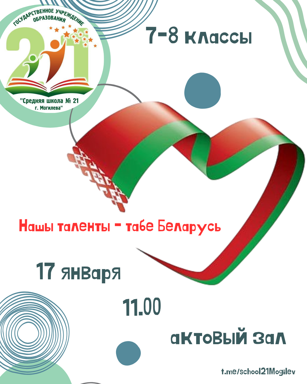 Приглашаем вас, 17 января, в 11:00 в наш актовый зал на особое событие — творческую встречу под девизом «Наши таланты — тебе, Беларусь!».