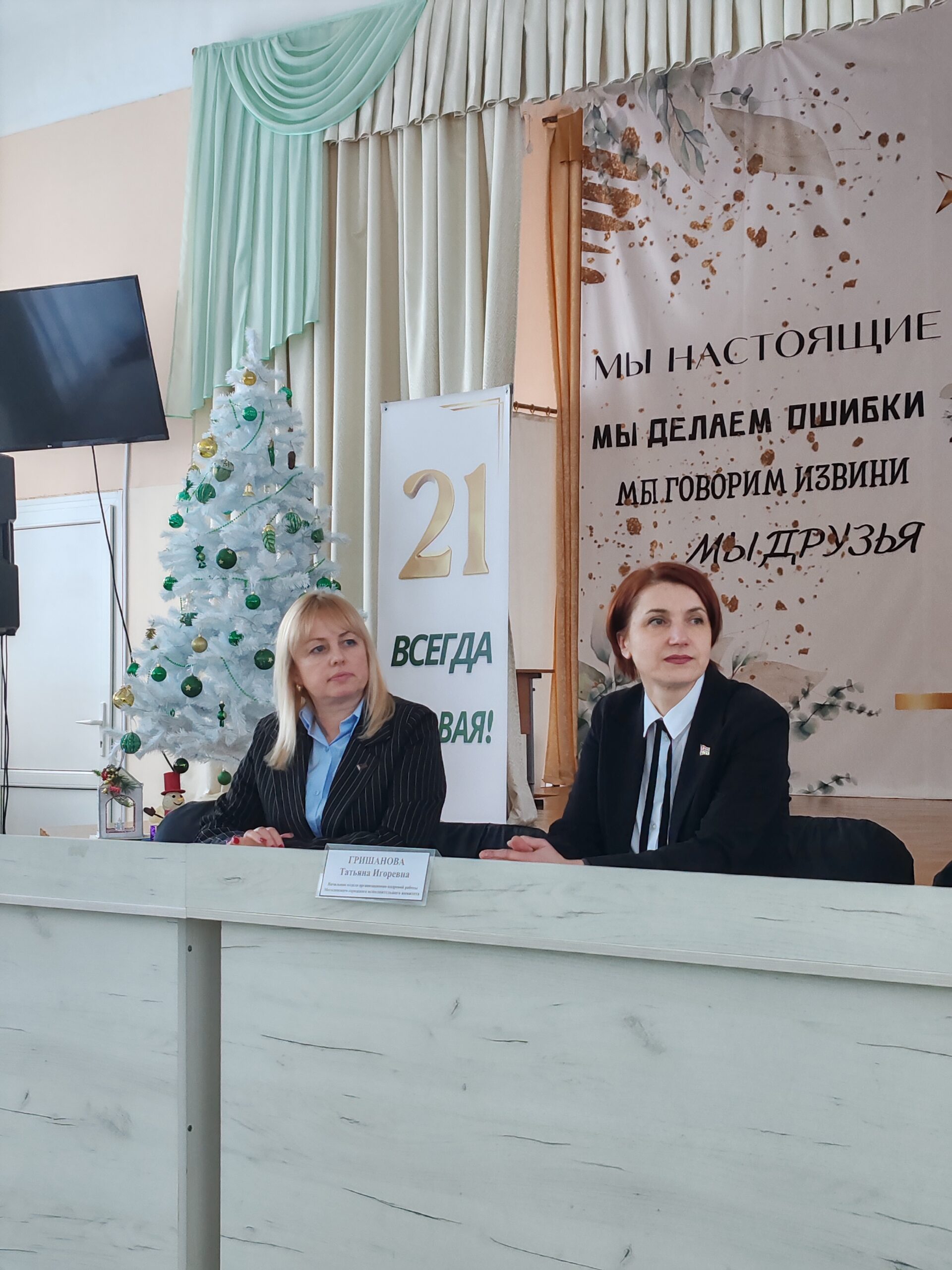 С трудовым коллективом Государственного учреждения образования «Средняя школа 21 г. Могилева» в ходе Единого дня информирования встретилась ГРИШАНОВА Татьяна Игоревна, начальник отдела организационно-кадровой работы Могилевского городского исполнительного комитета.