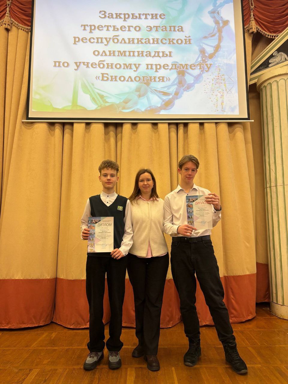 Гордимся нашими победителями: Ермоленко Станиславом -диплом 1 степени, Михайловым Дмитрием — диплом 3 степени по учебному предмету «Биология»(учитель биологии Пивунова Екатерина Владимировна);