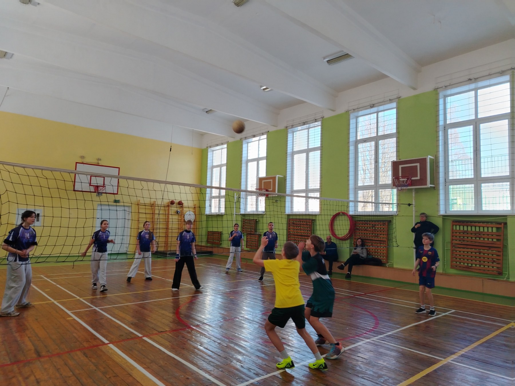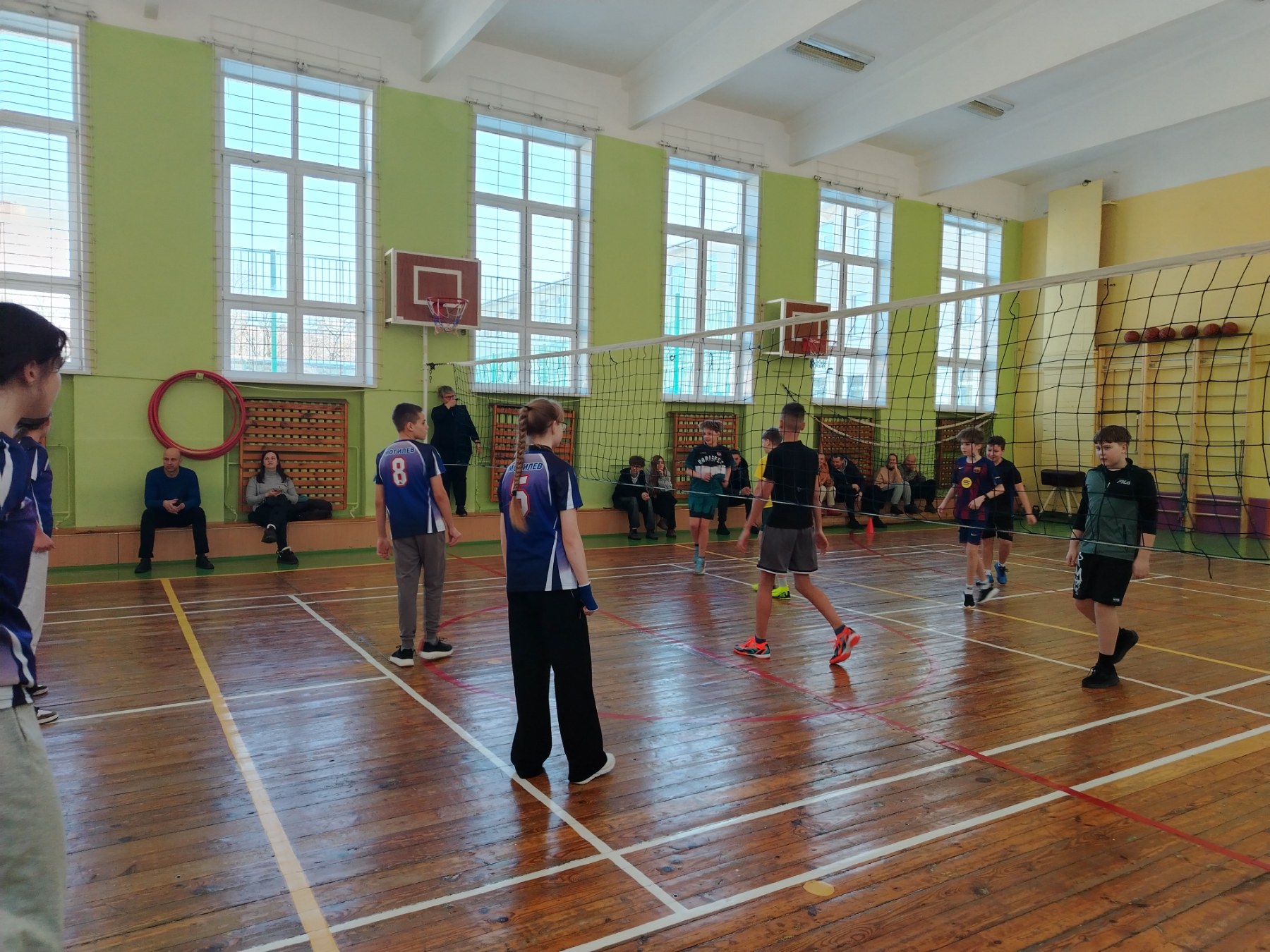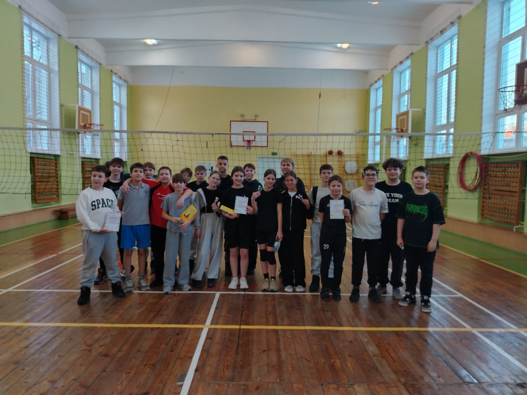 Сегодня ребята 6-х классов встретились на спортивном поле и поиграли в волейбол.