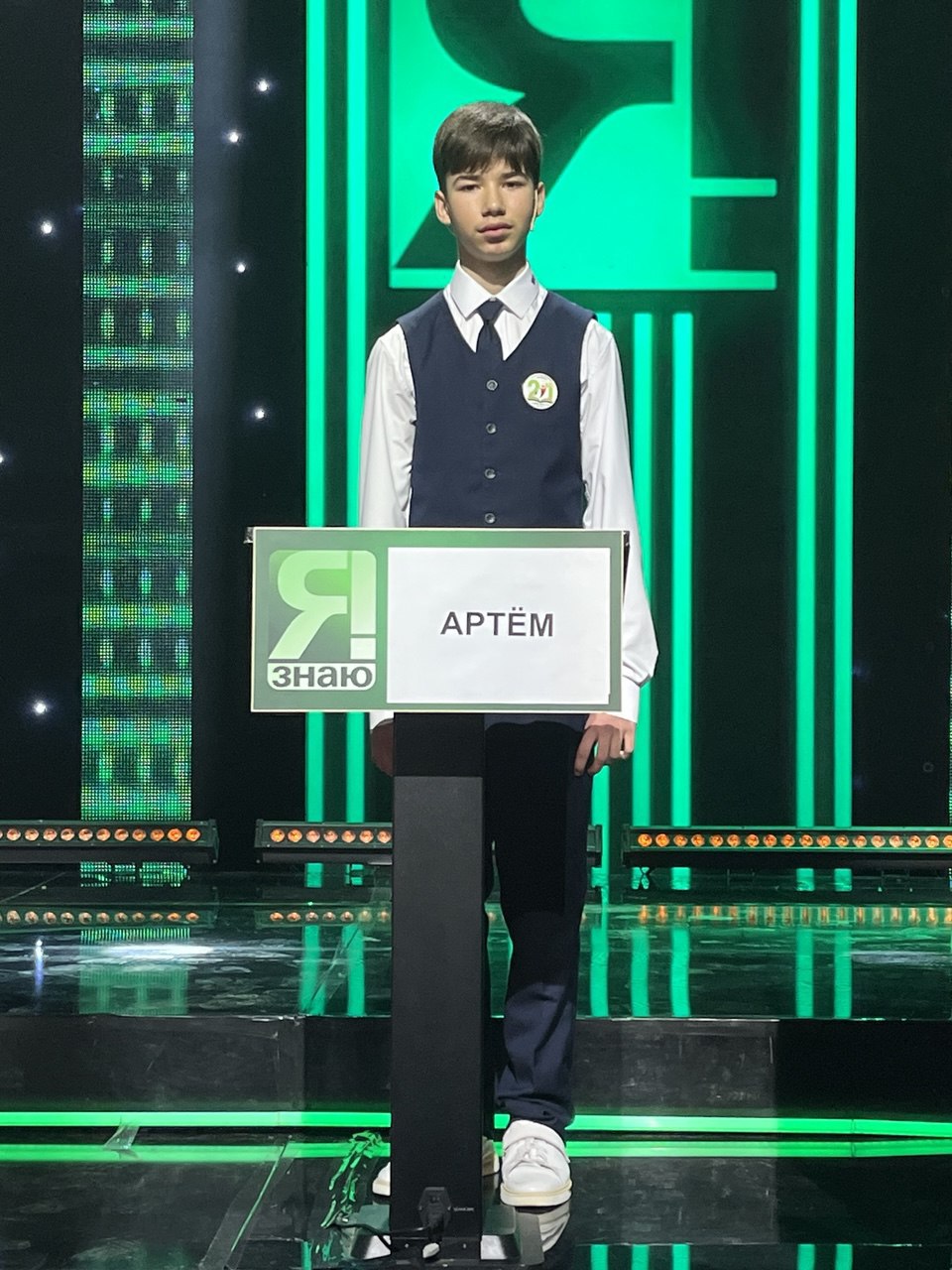 Учащийся 7 «Б» класса Елисеенко Артём одержал победу в телевизионном интеллектуальном проекте «Я знаю»!