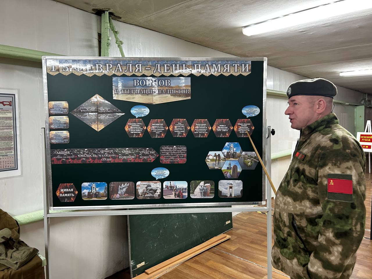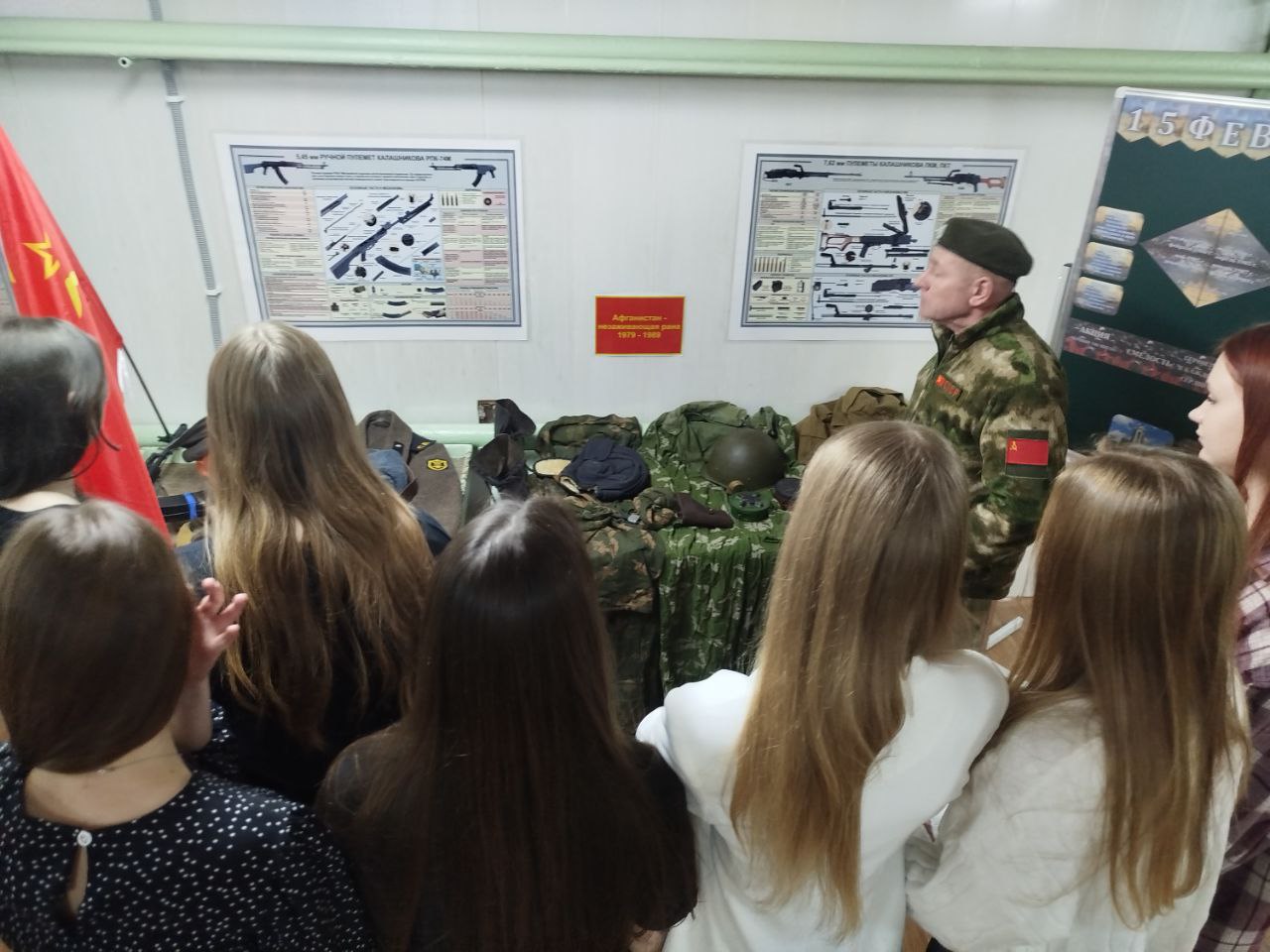 В рамках Дня памяти воинов-интернационалистов руководитель по военно-патриотическому воспитанию Эдуард Сергеевич Карпюк провел для учащихся экскурс по экспозиции «Павшим посвящается…».