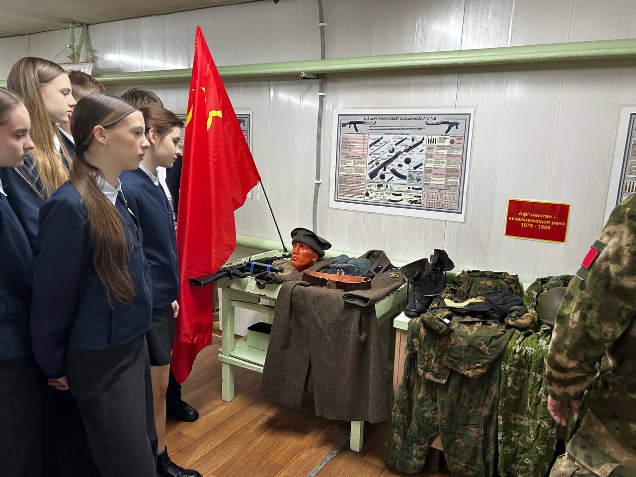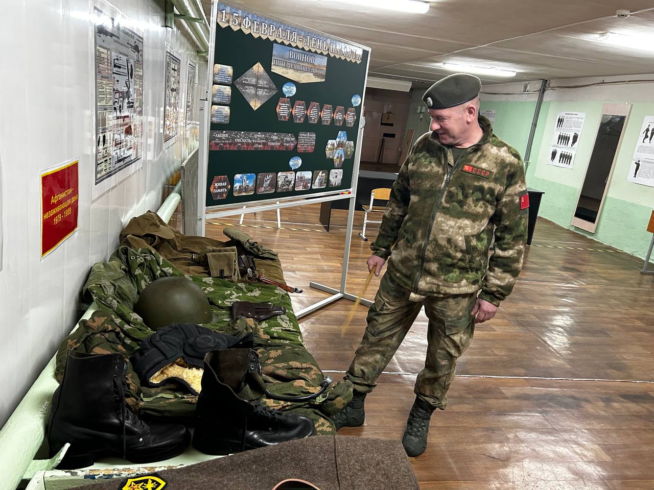 Эдуард Сергеевич напомнил ребятам о памятной дате, о мужестве и стойкости солдат, исполнявших служебный долг за пределами Отечества. Обращаясь к стендам экспозиции, он рассказал о локальных войнах и военных конфликтах, уделив особое значение Афганской войне.
