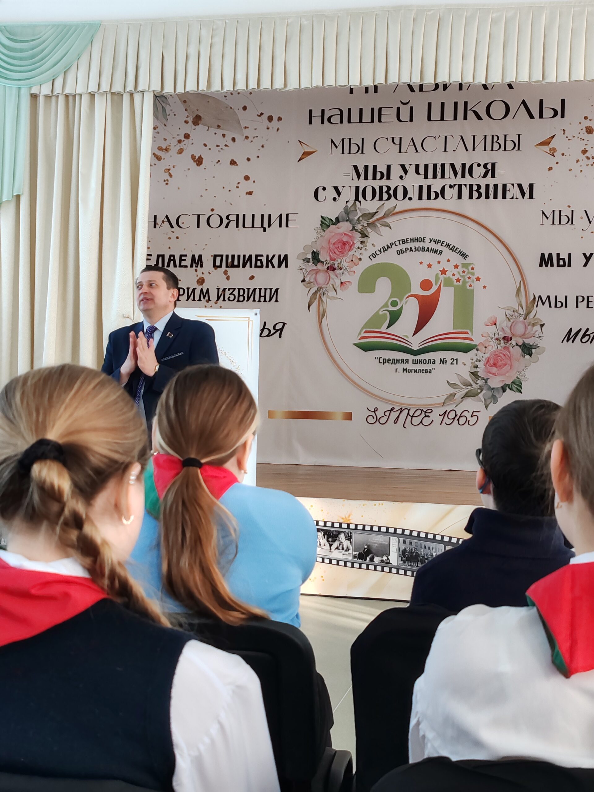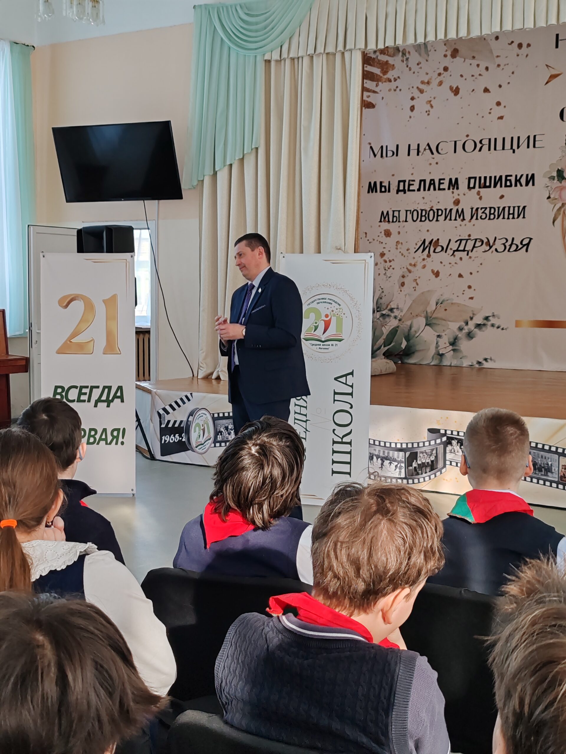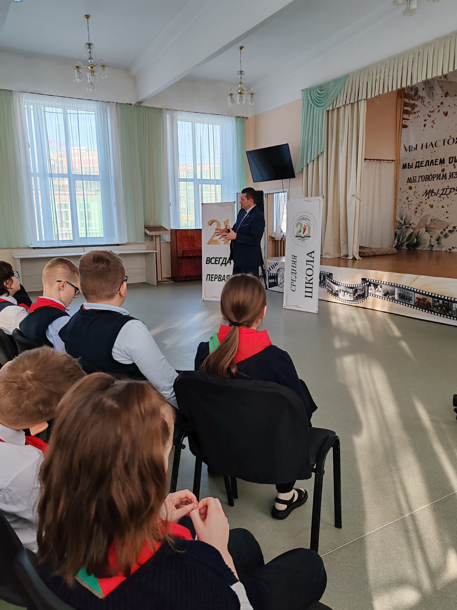 Сегодня с пионерами нашей школы урок мужества провел председатель Могилевской областной организации РОО «Патриоты Беларуси» Александр Шкадов.