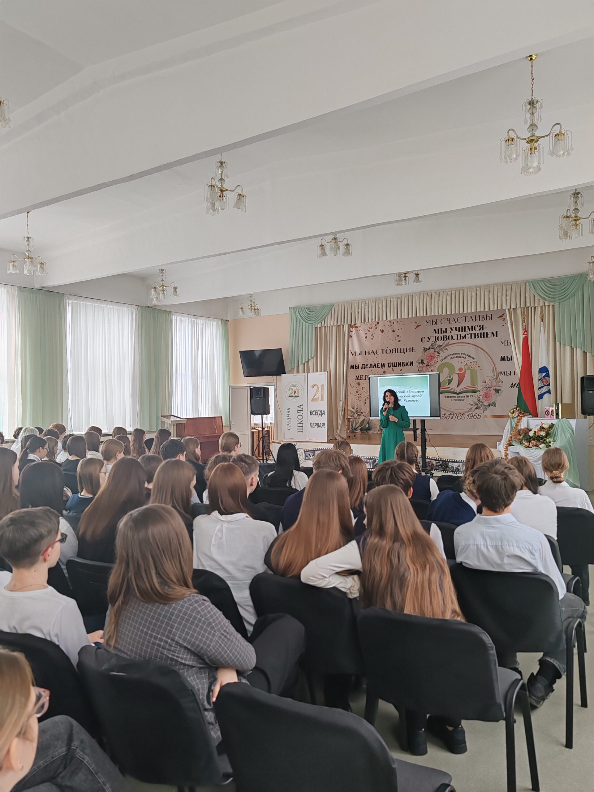 В рамках школы активного гражданина с ребятами встретилась заместитель директора по основной деятельности Могилёвского областного краеведческого музея имени Е. Р. Романова Александра Сергеевна Буракова.