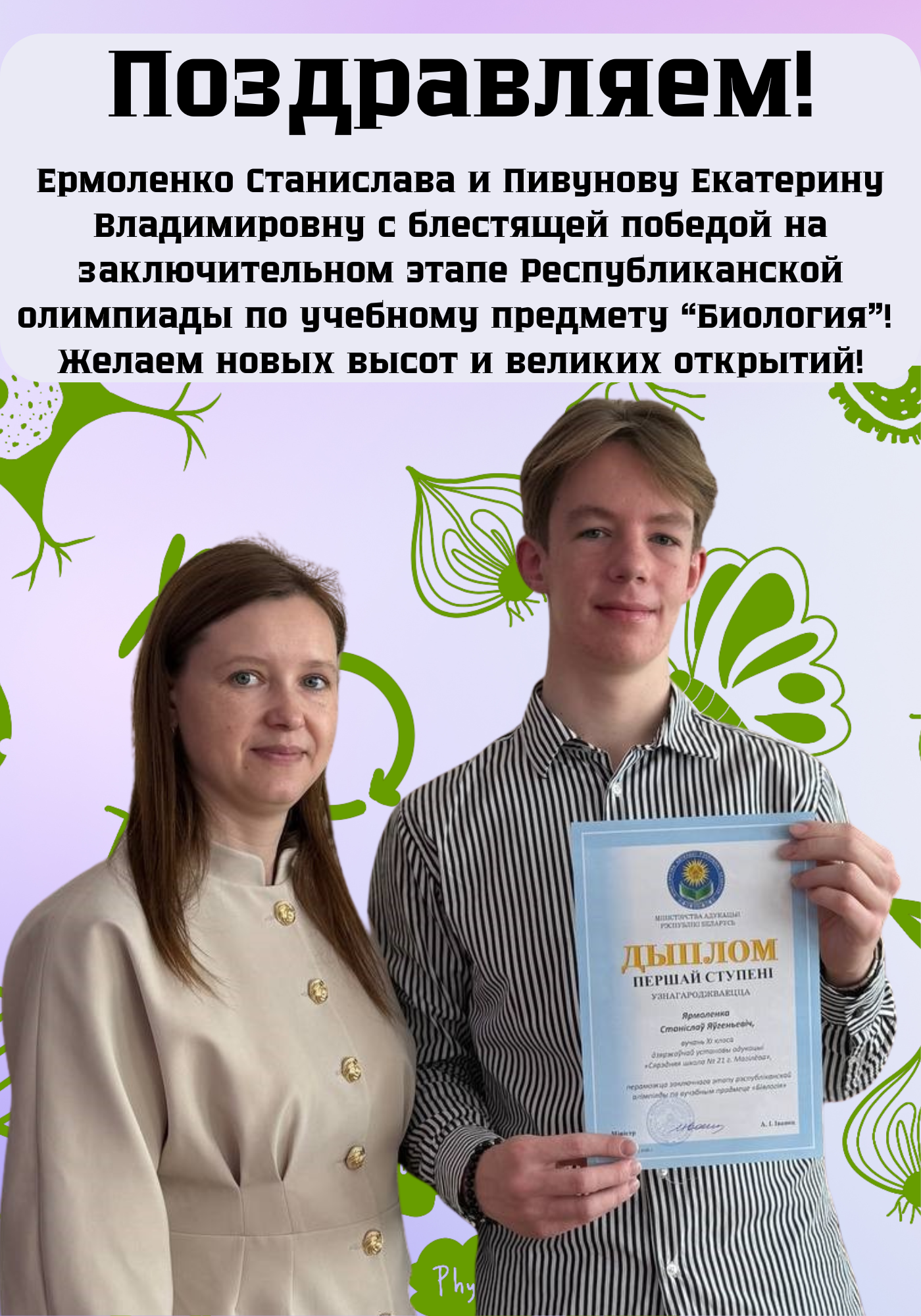 Поздравляем вас с блестящим результатом на заключительном этапе республиканской олимпиады по учебному предмету «Биология»! Быть лучшими в биологии среди сильнейших знатоков страны — это огромная честь и заслуженная награда за ваш многолетний труд.