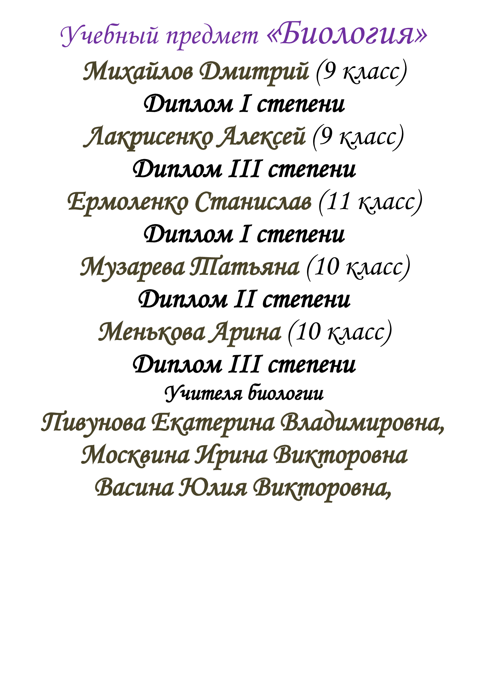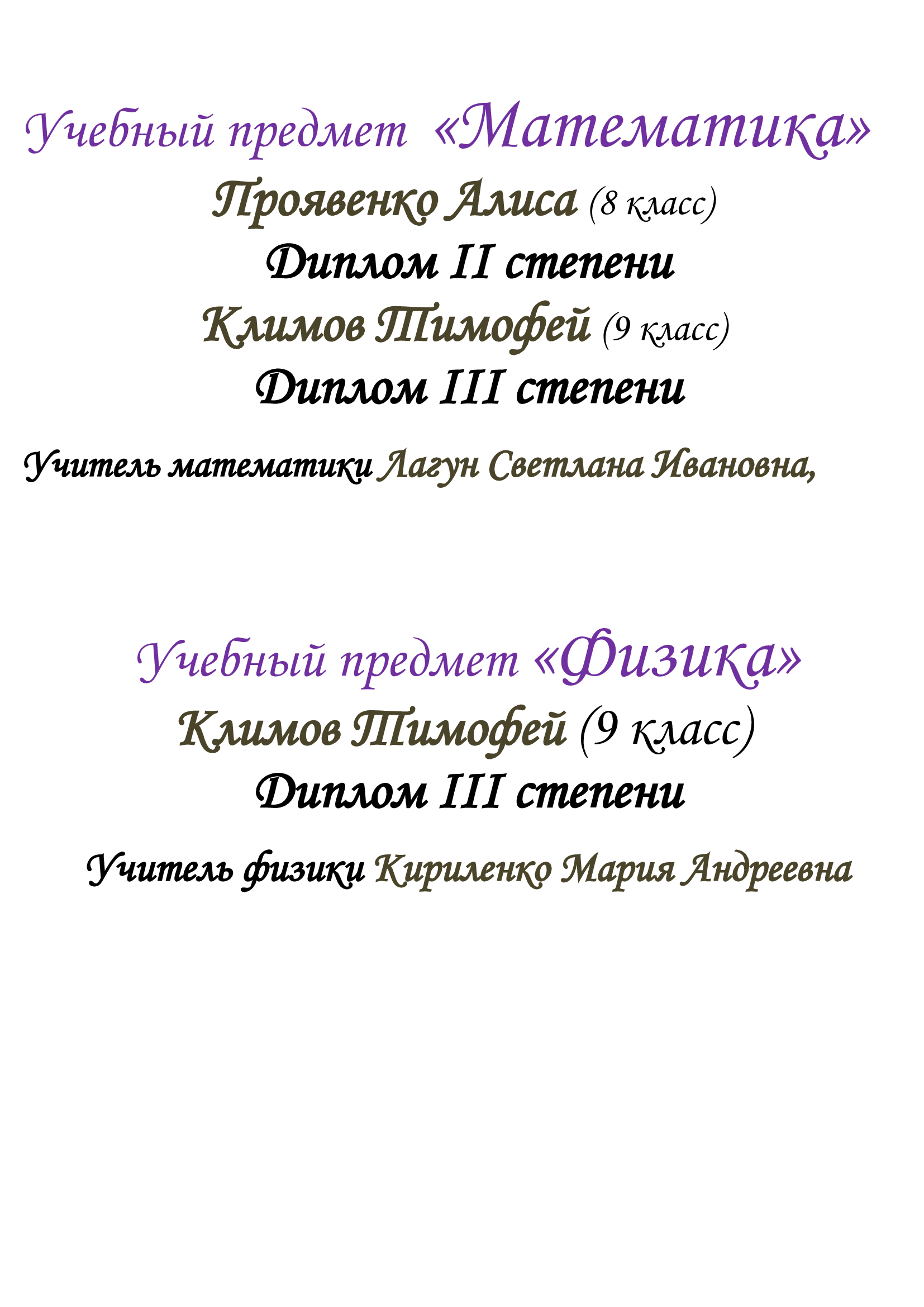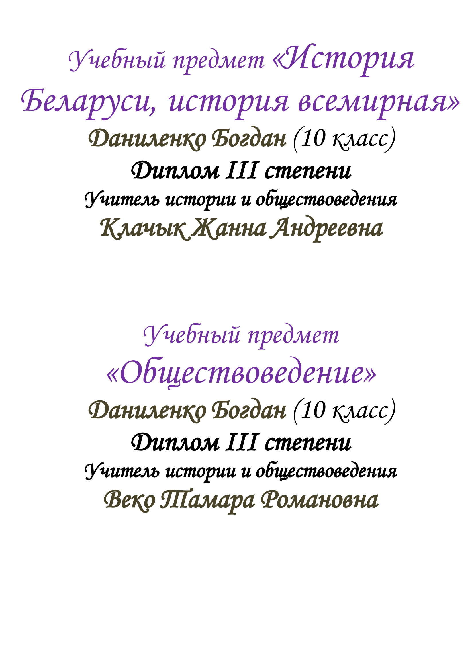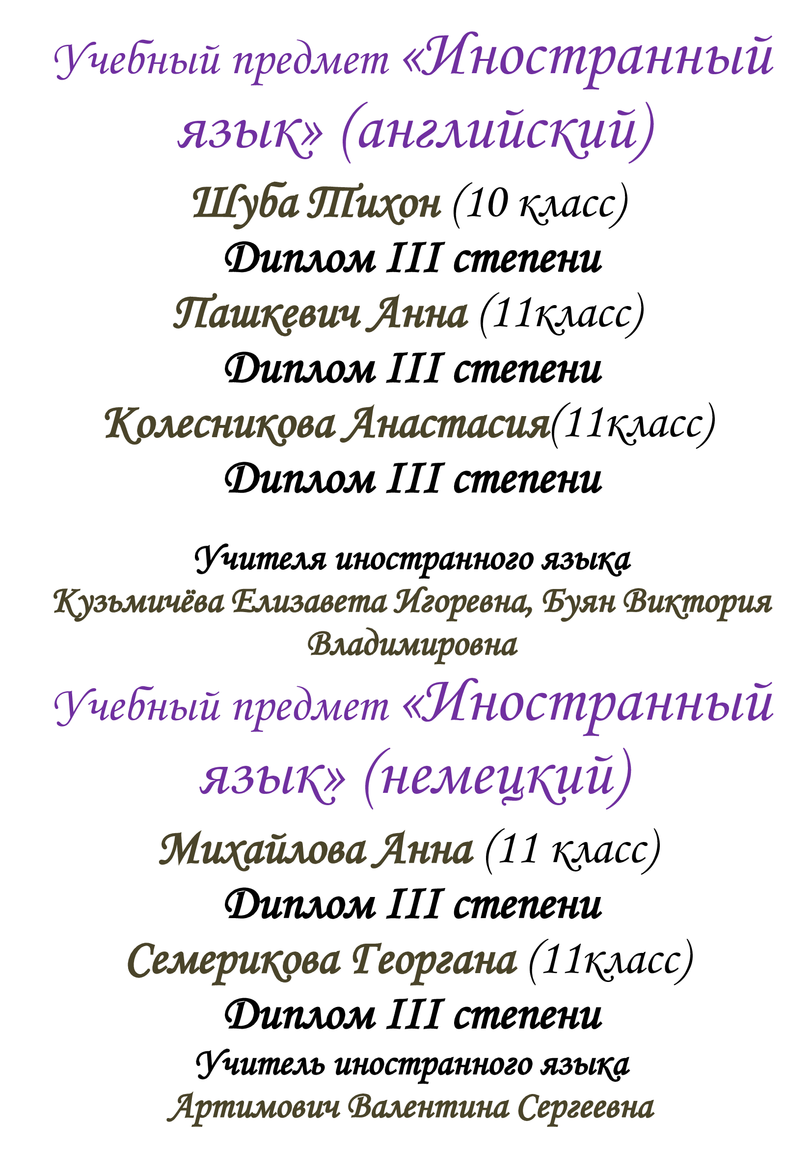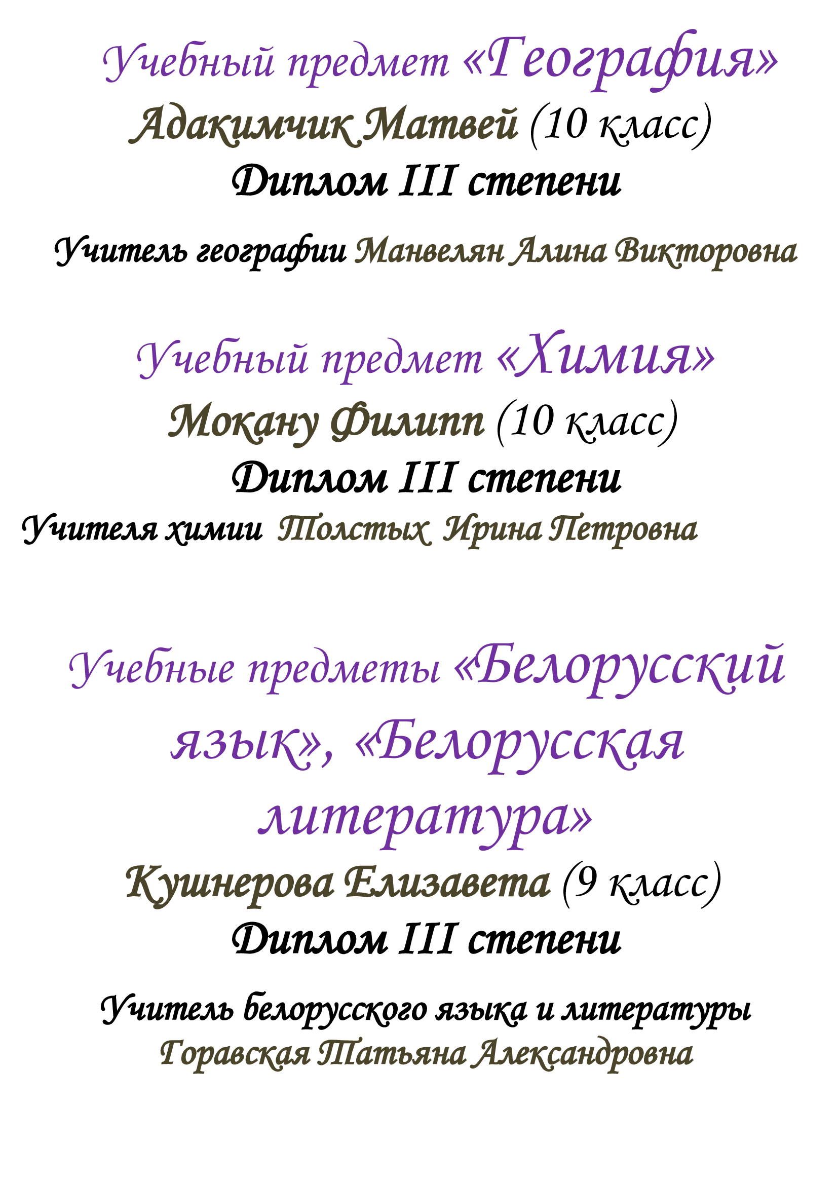 - Городская олимпиада по учебным предметам среди учащихся IV-X классов учреждений общего среднего образования