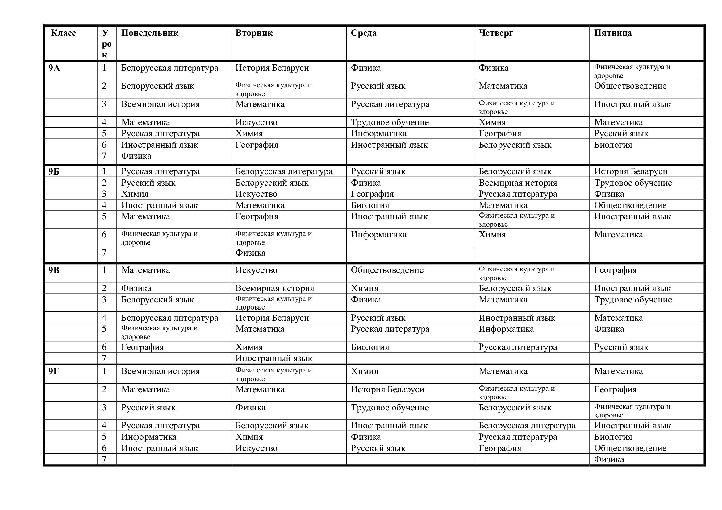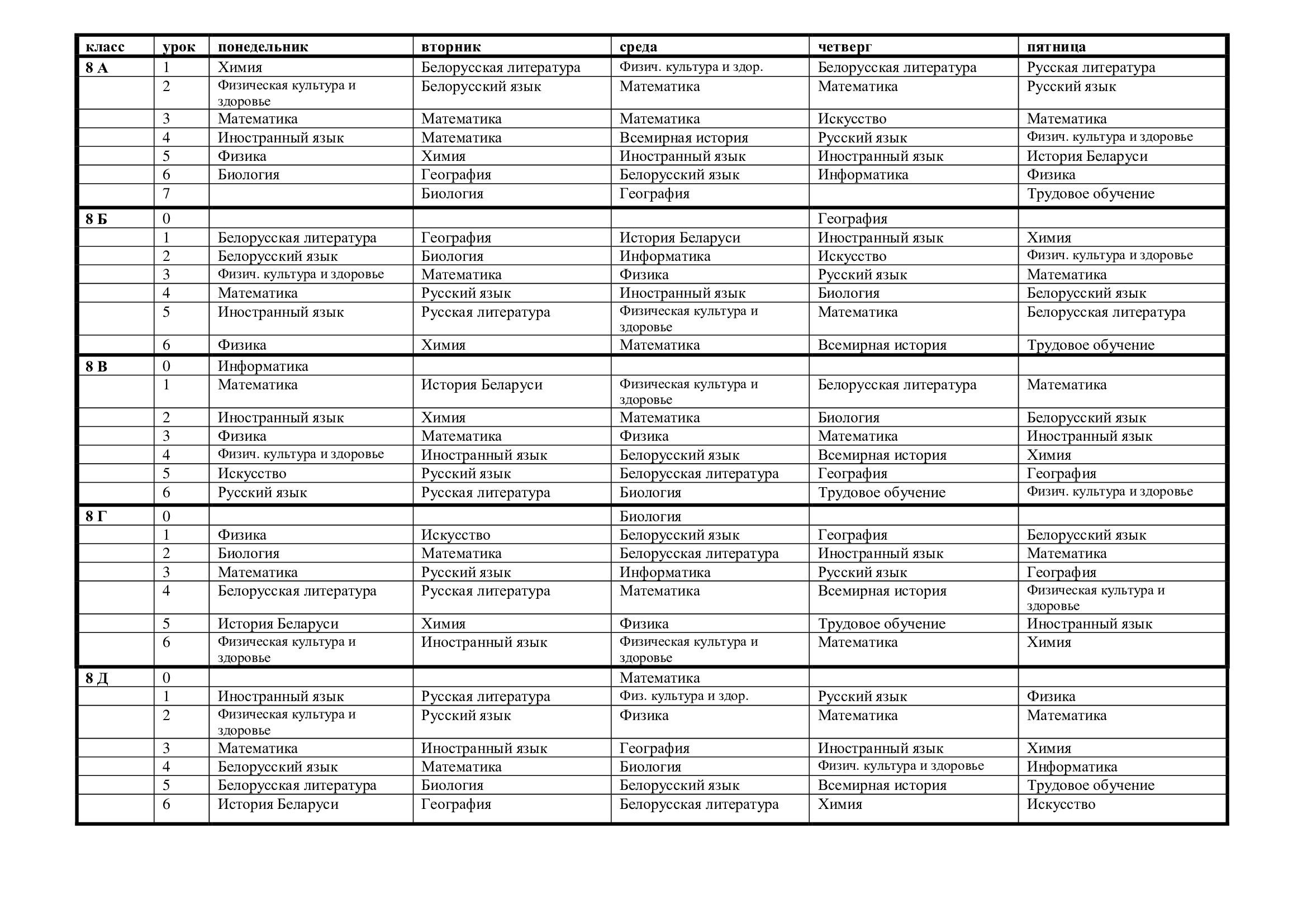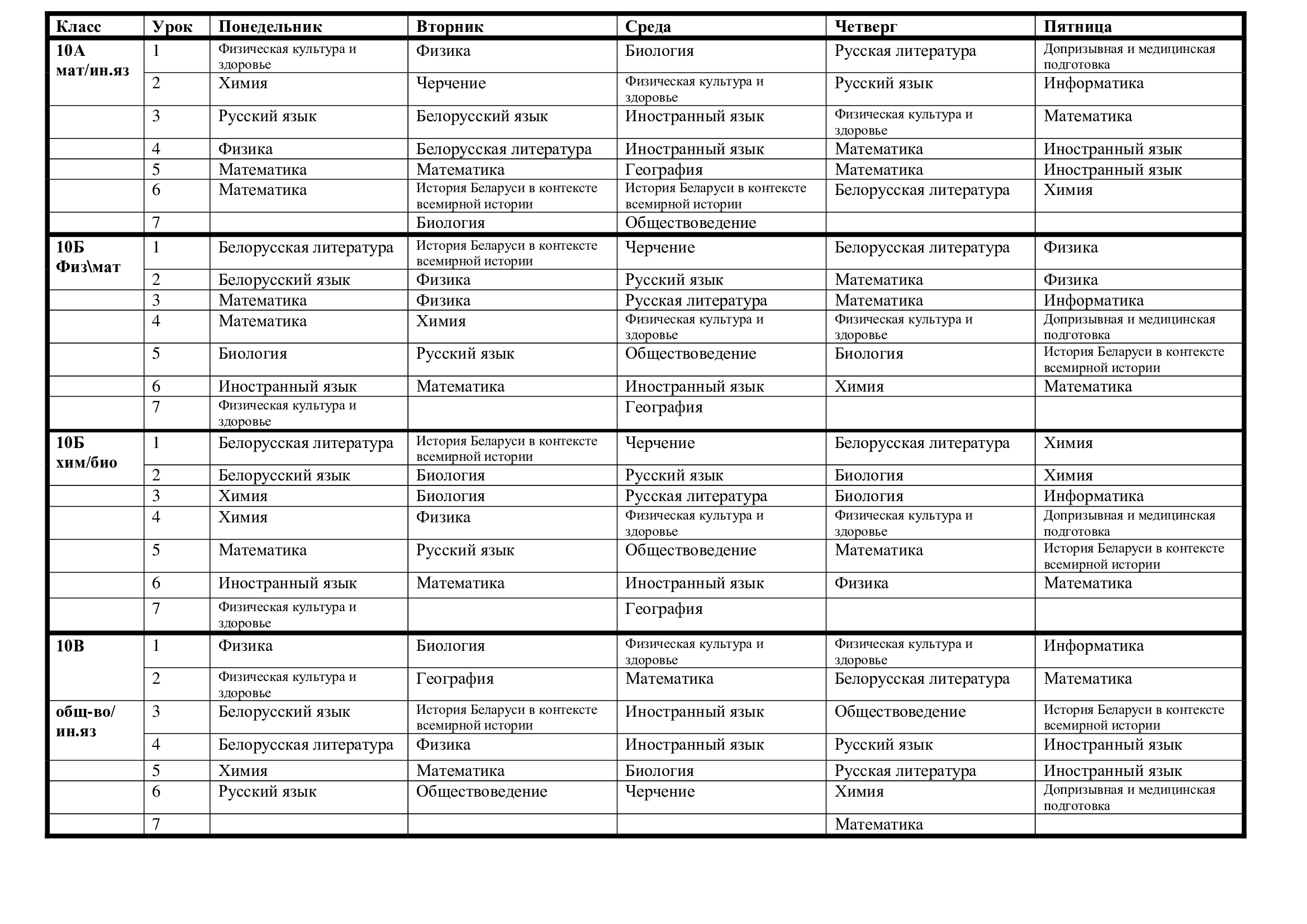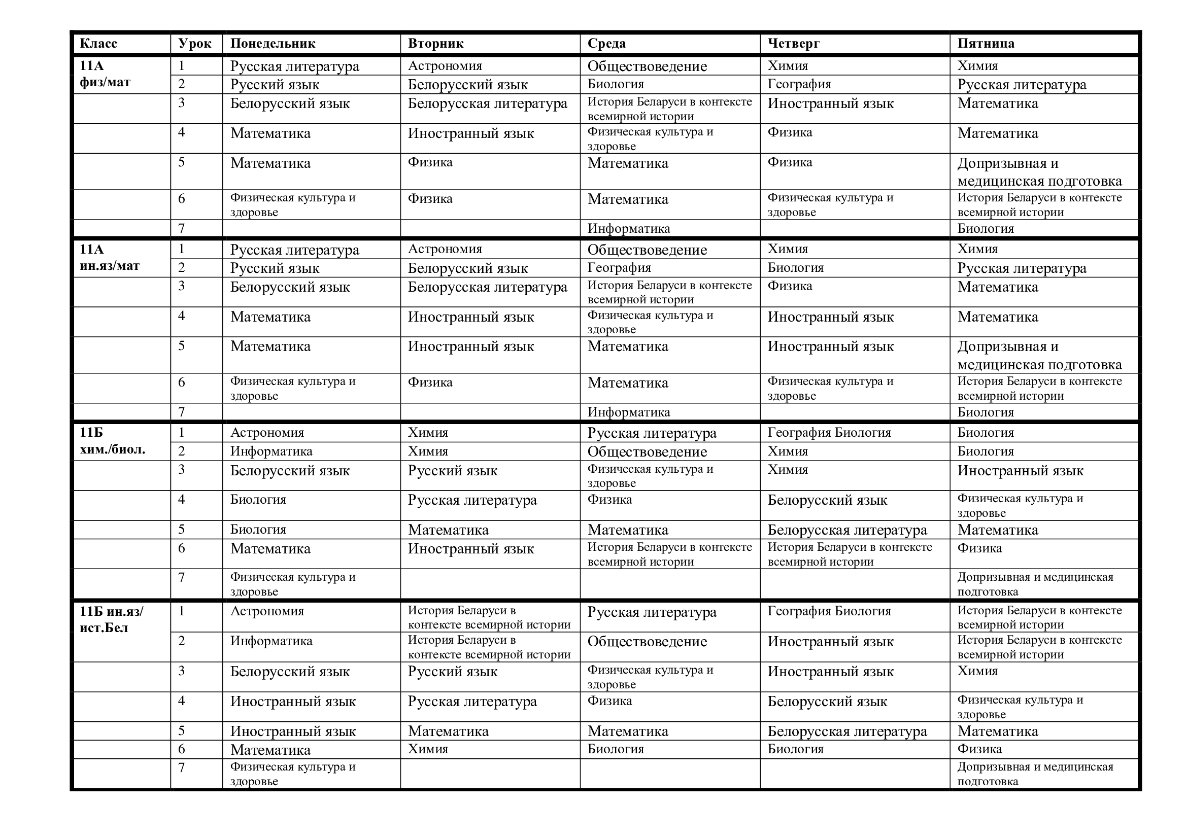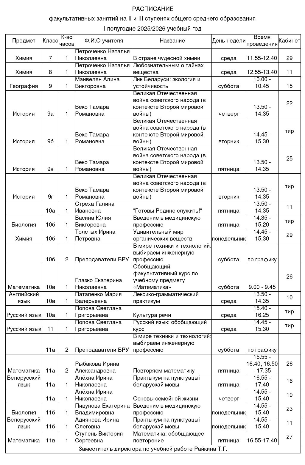 Расписание факультативных занятий на II и III ступенях общего среднего образования