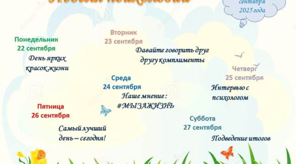 Читать дальшеС 22 по 27 сентября в школе проводиться «Неделя психологии 2025». Запланированные мероприятия направлены на […]