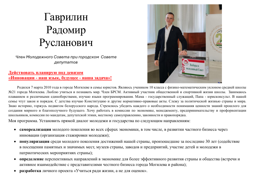 Молодежный Совет при Могилевском городском совете депутатов Шестая сессия Молодежного парламента при городском Совете депутатов Молодежный парламент Могилева – забота о памяти и чистоте! Участие в пленуме «Память и боль белорусской Земли» Молодежный парламент в деле Состоялся митинг «Живая память» Участвуем в акции «Капля жизни» 1 2 Следующая страница→